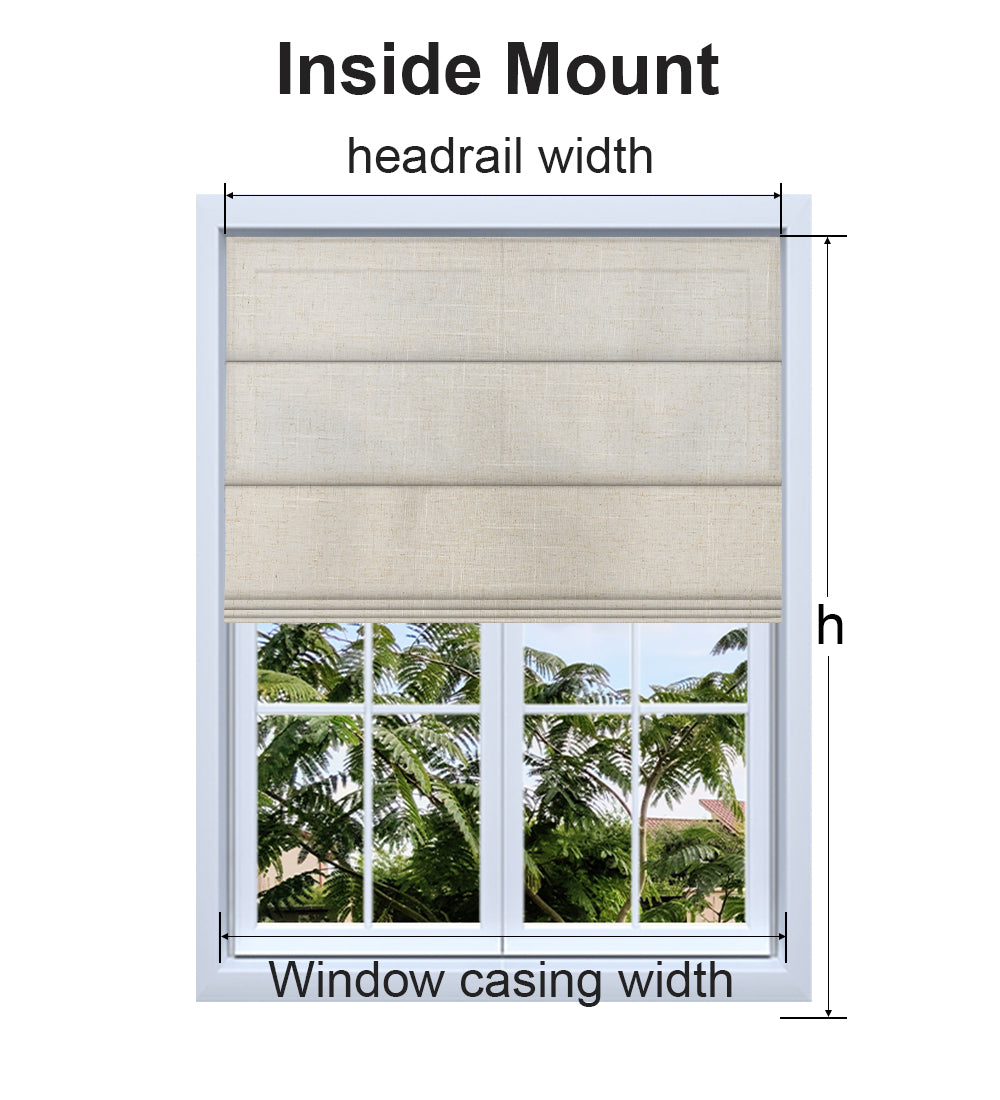 The stack height will vary slightly based on the size of the Roman blinds as well as the fold type. The stack height will vary from 9 inches to 14 inches, with taller shades having a larger stack height.