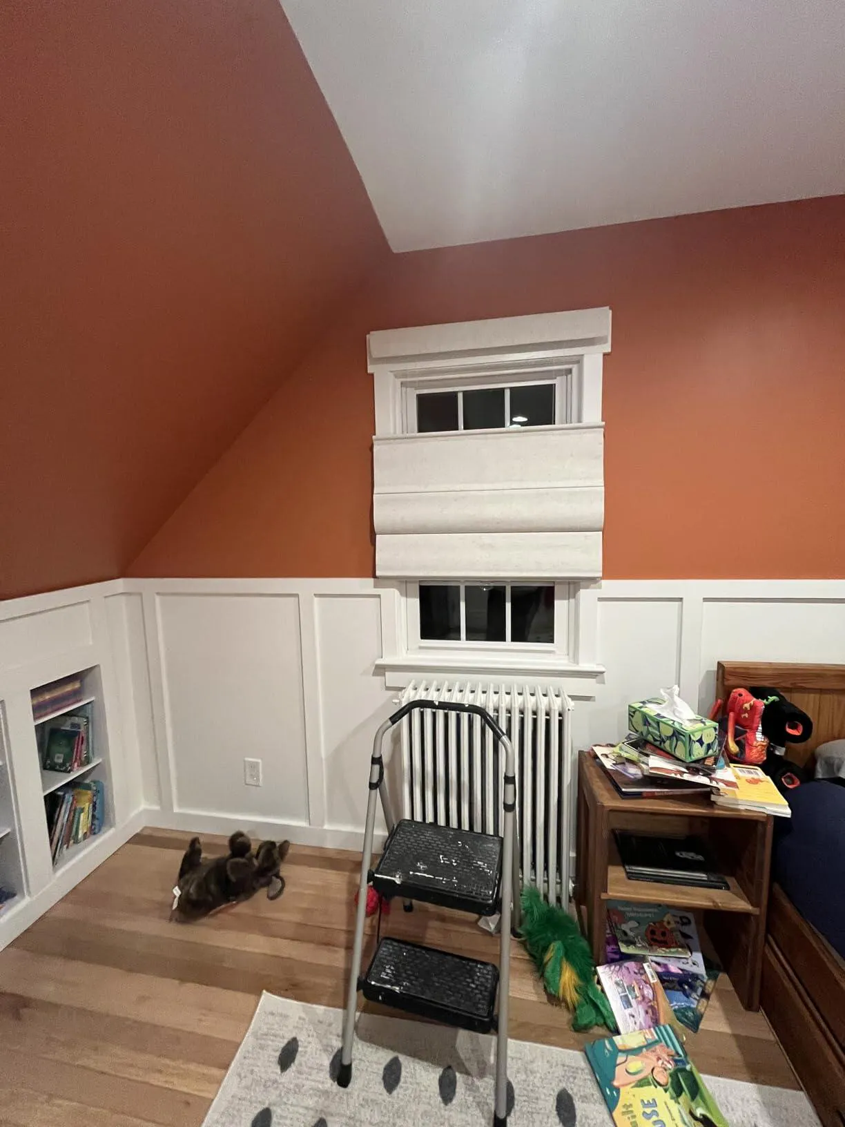 We used Velcro to make the header totally disappear — neat, sleek, and no hardware in sight.